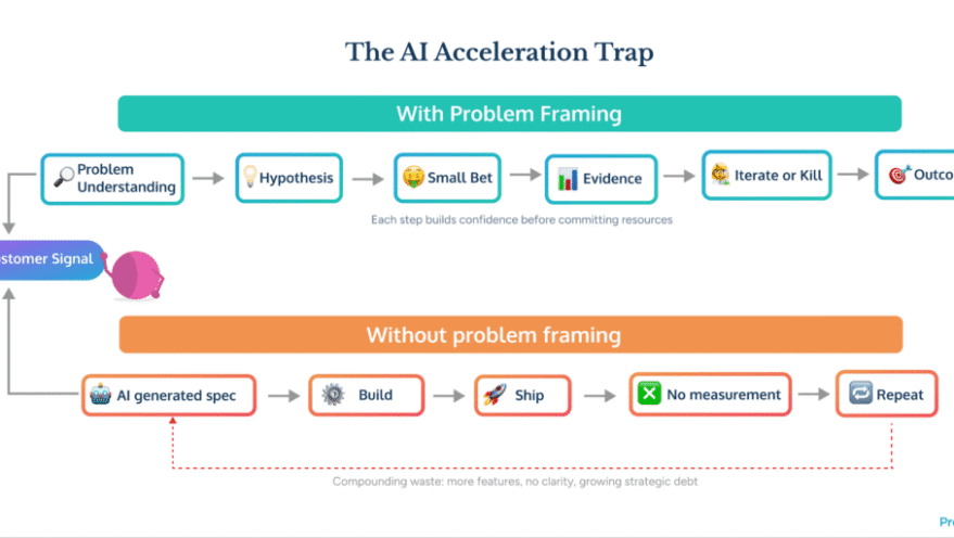 Every product org I talk to has an AI story now. Specs written in seconds. Roadmaps populated overnight. Customer feedback summarized before the PM’s coffee is cool enough to drink.…